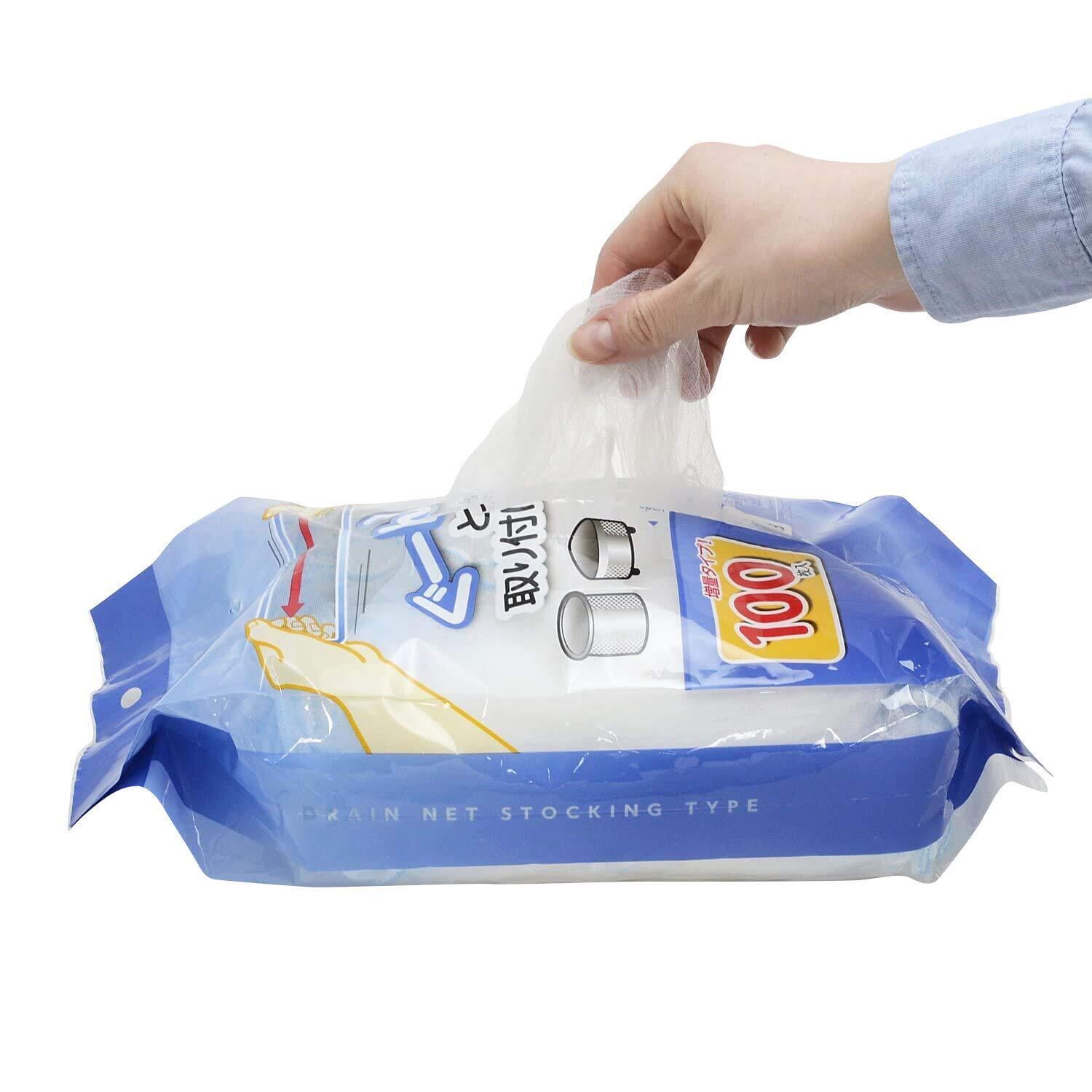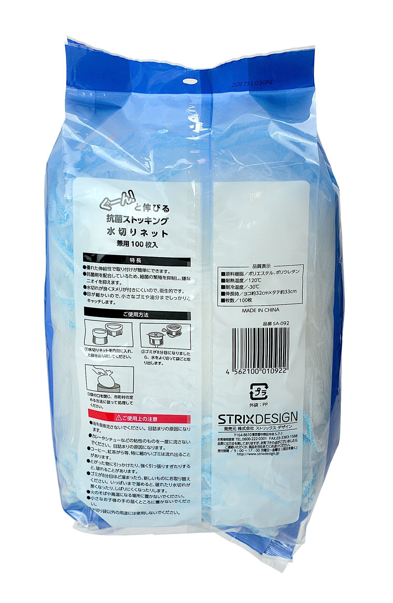【新春セール】[ストリックスデザイン] 水切りネット ぐーん! と伸びて取り付け簡単 100枚 約32×33cm ストッキング 深型 三角コーナー 兼用 抗菌 排水口 排水溝 ネット 大容量 SA-092