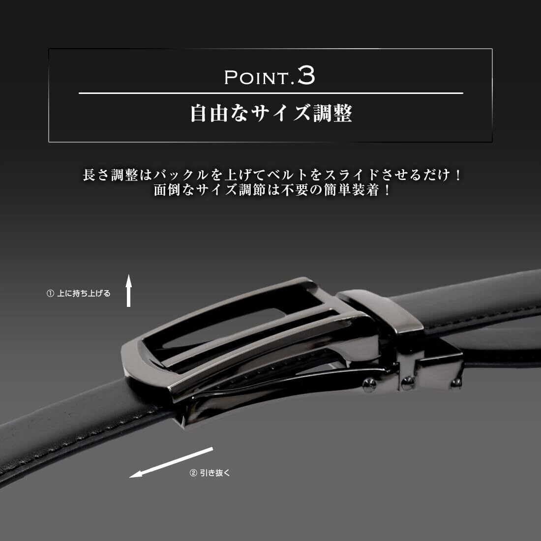 【スタイリッシュなオートロックベルト】バックルにベルトを通すだけで好きな位置で留める事が出来る、穴なしスライド式ベルトです。 本革ならではの質感を味わって頂けます。ビジネススタイルにもカジュアルスタイルにも合わせられるシンプルなデザイン! 服装の色とスタイルを選ばずに、スーツ、デニム、チノパンなどにも合わすことができますので フォーマル、カジュアルなどのシーンにも最適なメンズベルトです。学生用としてもサイズカットしてお使い頂けます。
