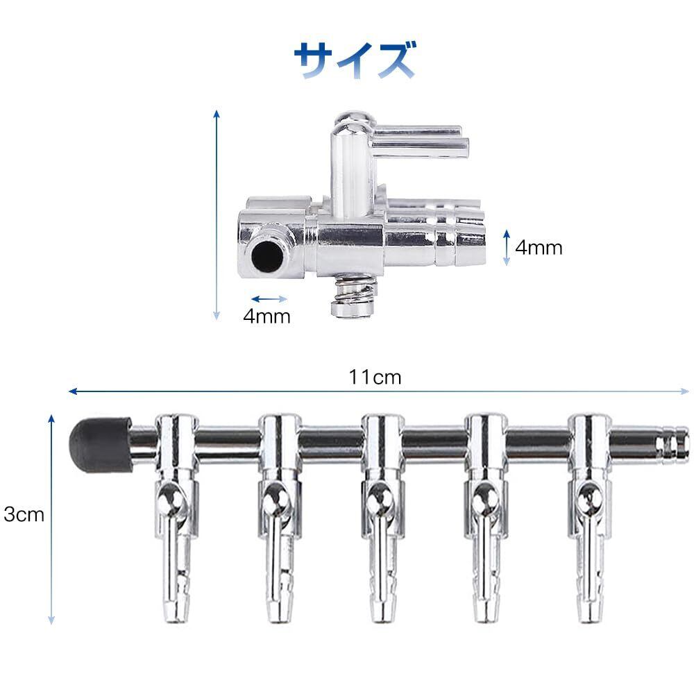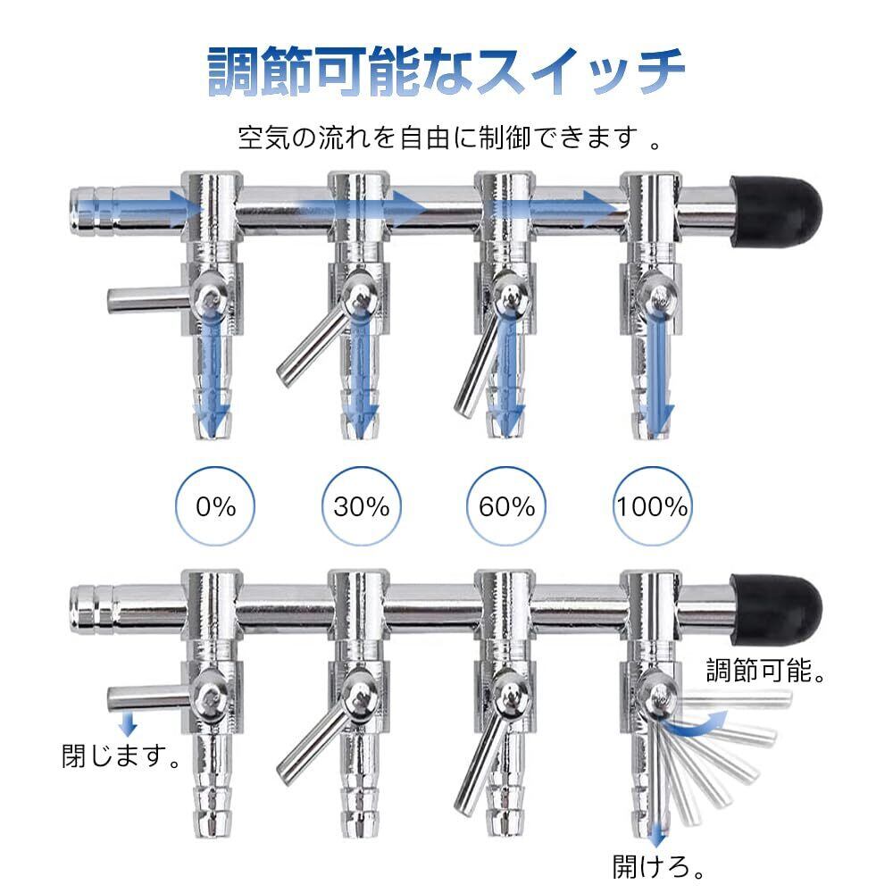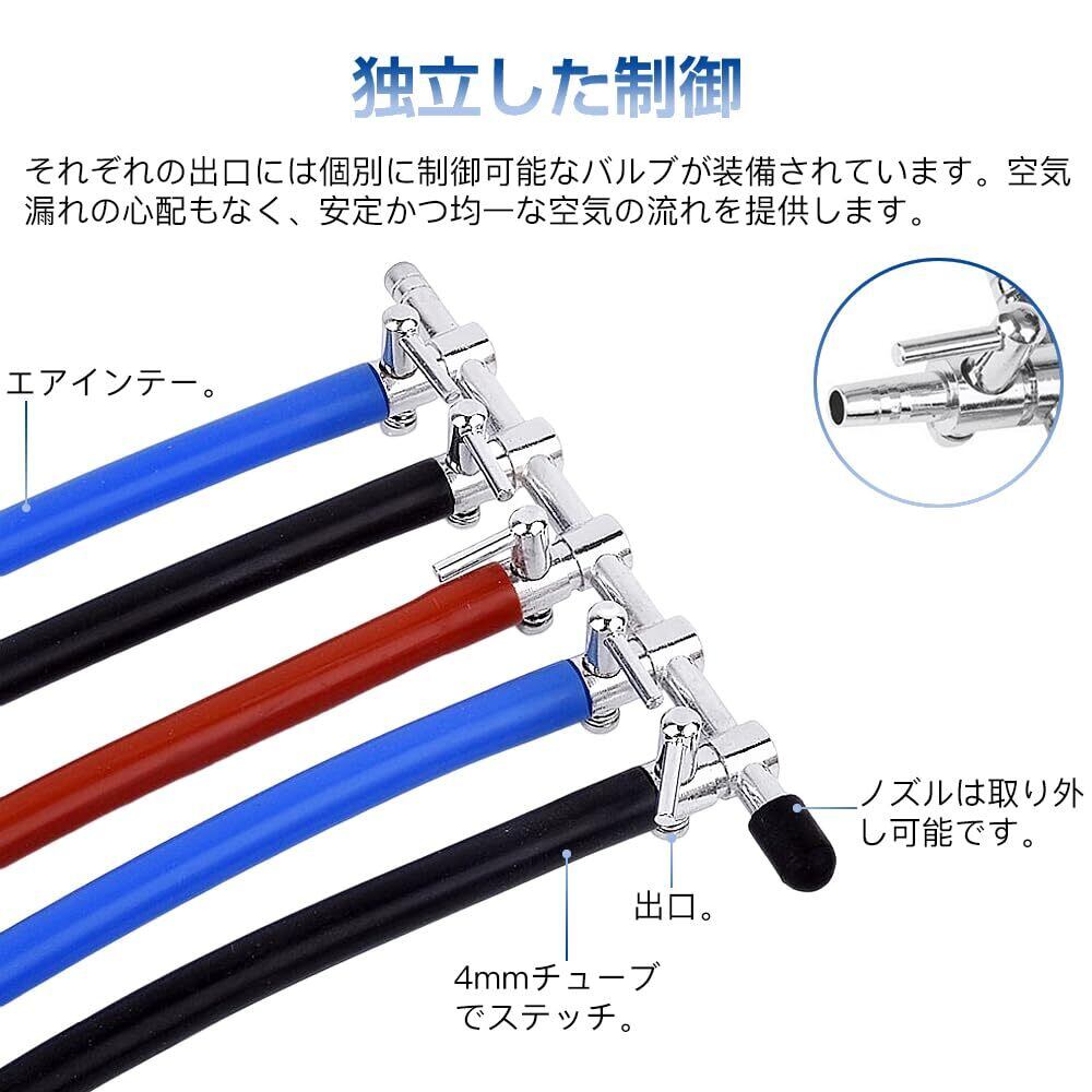 【調節可能な分岐機能!】: 5分岐のデザインにより、複数のエアチューブを同時に接続可能です。各分岐の調整も簡単にでき、それぞれの水槽に応じて必要な酸素量を供給できます。これによって、異なる魚や水草に最適な環境を作り出すことができます。