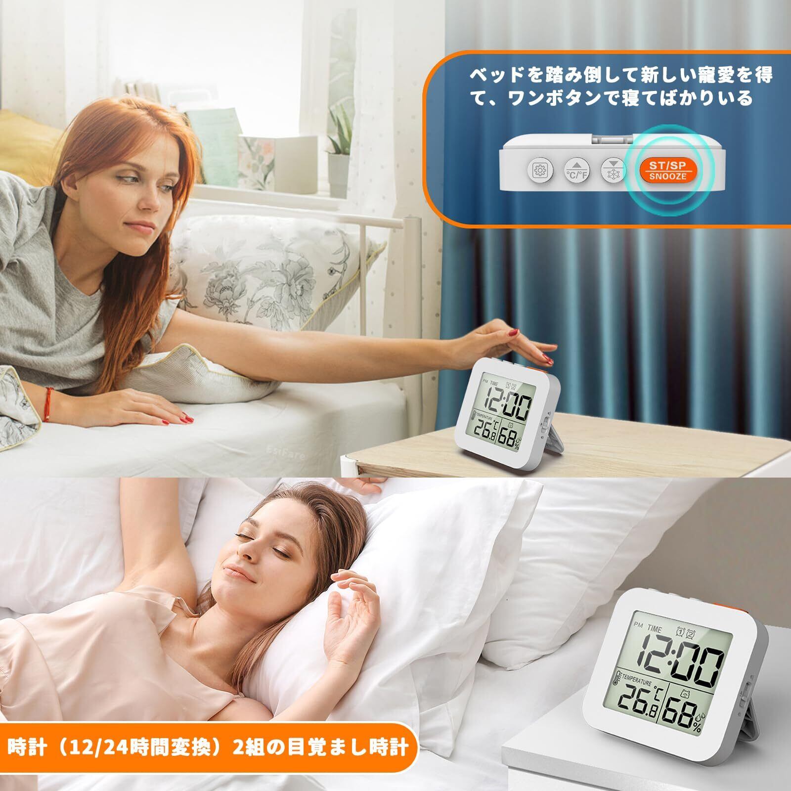 目覚まし時計 時計 温度 湿度 温湿度計 デジタル時計 置き時計 2組アラームクロック タイマー 多機能 LCD大画面 キッチン 浴室 勉強 運動 最大100時間 自宅学習/試験時間管理に最適