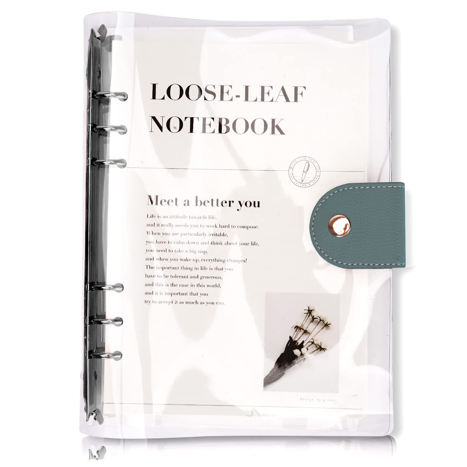 【特価商品】システム手帳 A5サイズ 6穴 ルーズリーフ PVC 透明バインダー シンプル手帳 柔らかい ボダン付き 横罫 ノート クリア素材 スケジュール帳 メモ帳 オフィス用品 | gsmshop