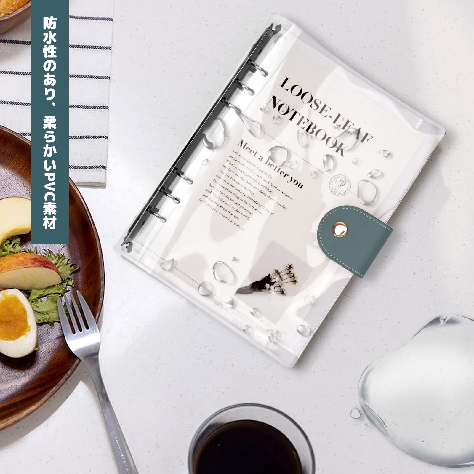 システム手帳 A5サイズ 6穴 ルーズリーフ PVC 透明バインダー シンプル手帳 柔らかい ボダン付き 横罫 ノート クリア素材 スケジュール帳 メモ帳 オフィス用品