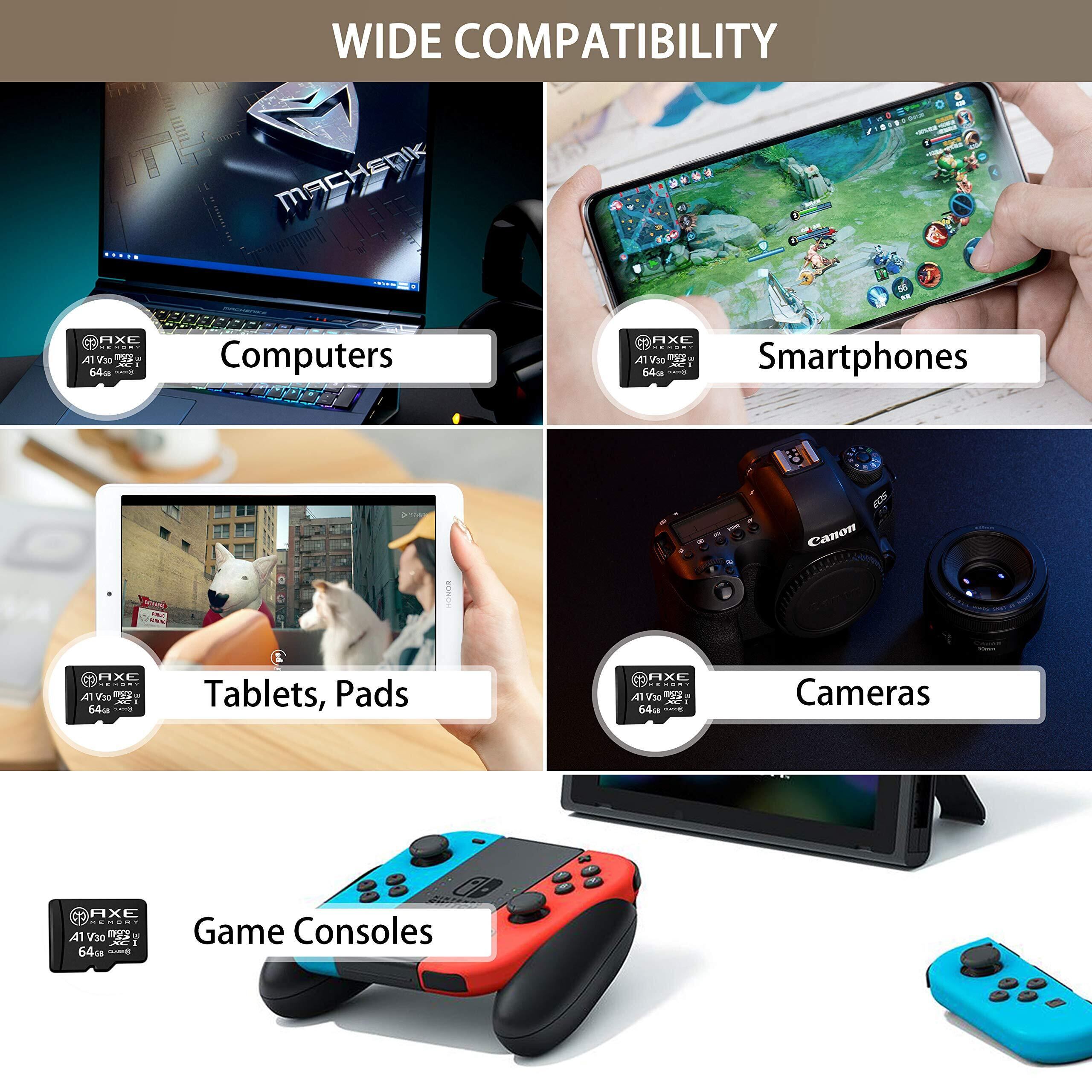 AXE microSD 64GB マイクロsdカード Nintendo Switch SDカード V30 UHS-I U3 A1 C10 4K UHD動画対応 転送速度95MB/S 高速 microSDXC SDアダプター付【アクスメモリ 】