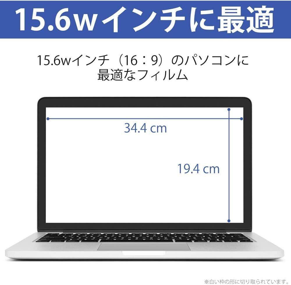 【ご購入前に】:※フィルムサイズをお確かめの上、ご購入ください。※外箱は汎用品のため、外箱の説明と内容品は異なります。開封して中の説明書をご確認ください。【対象機種】:15.6インチワイド(16:9)インチの画面を対象にしています。【フィルムサイズ】:34.4cm×19.4cm【サイズ調整可能・方眼紙付き】:このサイズより小さい液晶ディスプレイであれば、方眼紙とカッター、定規を使い、切断して大きさを調整することができます。【タッチパネル対応】:タッチパネルの端末でも問題なくご使用いただけます。 【ブルーライトカット】:液晶画面から発生する目に有害なブルーライトを約48%カットし、目の健康を守ります。